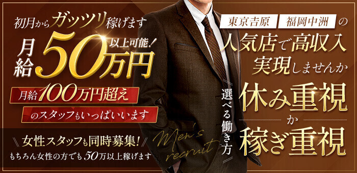 年功序列にサヨナラ。吉原の高級店で、稼げる自分になる【月給50万円~】*大入手当有*賞与年2回*寮完備(無料)*食事代支給