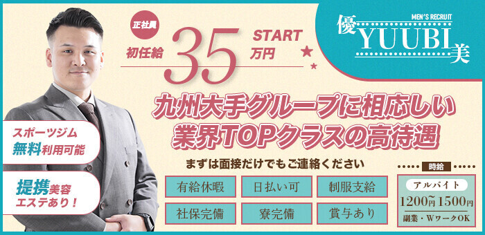 勤務地:≪勤務地≫ 福岡県福岡市中央区 ≪アクセス≫ 各線「薬院」駅徒歩5分 福岡市地下鉄七隈線「渡辺通」駅徒歩5分 ☆★11店舗展開中!★☆ 『MYFグループ加盟店』は『優美』を初め、福岡市内に11店舗運営中。ご興味をお持ちの方は、アクセスも含めてご相談ください。 ■店舗一覧 【トクヨク】 ・Royal LIPS VIP(ロイヤルリップスVIP) ・LIPS(リップス) 【ソープ】 ・TiAmo(ティアモ) ・MaCherie(マシェリ) ・MARIAGE(マリアージュ) ・ELUMO(エルモ) 【デリバリーヘルス】 ・優美(ゆうび) ・純恋(すみれ) ・CELEB優美(セレブゆうび) ・luxury aroma 咲(さき) ・men’s relaxation VEGA(ベガ)