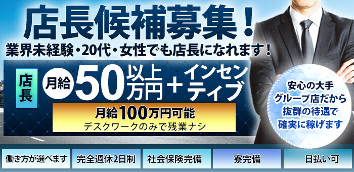 【月給50万円~】【完全週休2日あり】業界未経験・20代・女性も店長になれます!デスクワークのみで残業ありません!年功序列勤務年数、学歴での上下関係は一切ありません。日払・有休・社保・寮完備・賞与!