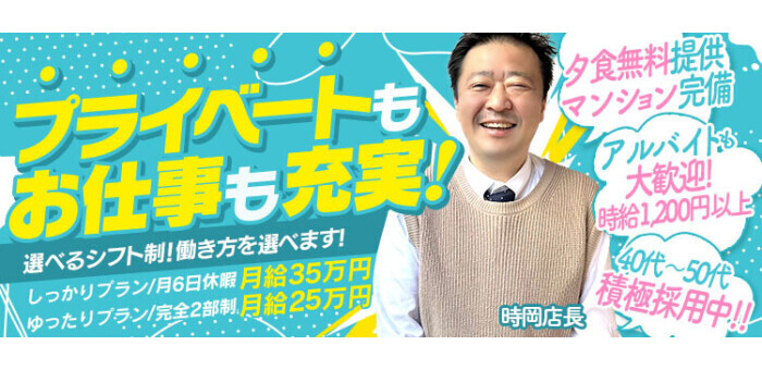 社会保険完備の法人経営!ワークライフバランスでプライベート重視のお仕事環境!2つのお仕事プランからご希望のプランでお仕事をして頂けます。当店の一押しポイントは嬉しい食事付き!今春新店舗もオープン予定!