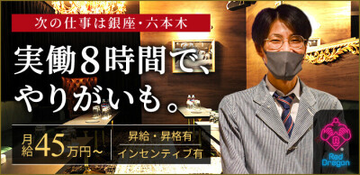 実働8時間で、やりがいも。次の仕事は銀座・六本木【月給45万円~】*社保完備*昇給・昇格有*インセンティブ有*まかない有