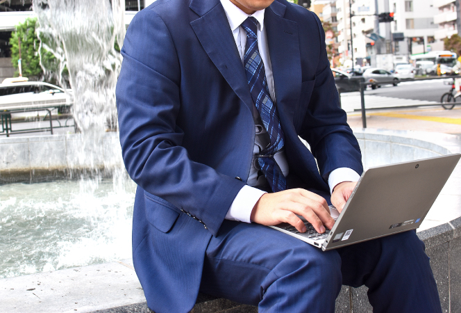 昼食はお弁当が毎日支給されます。職場で着るスーツも、ほら、まさに今着ているこれです。こんなに良いものを作ってもらえちゃう(笑)。携帯電話代だって支給されるし、おまけに1人1台ETC付きの社用車まで貸してくれるんです。
