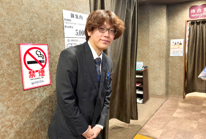 なので“お客様アンケート”は必ず確認します。先輩に「こういうお客さんだとマッチングしやすい」と教われるのもありがたい。今後はキャストさんとのコミュニケーションをもっと増やして、“お客様にまだ伝えきれていない良いところ”を引き出せるようになりたいですね。