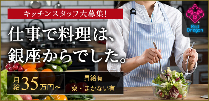 仕事で料理は、銀座からでした。~キッチンスタッフ大募集!~【月給35万円~】*社保完備*実働8時間*昇給有*寮・まかない有