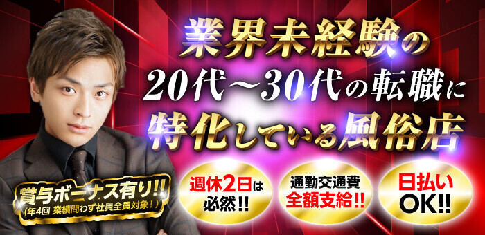 業界未経験の20代~30代の転職に特化している風俗店です 週休2日は必然!通勤交通費全額支給!日払いOK! 賞与ボーナス有り(年4回 業績問わず社員全員対象!)