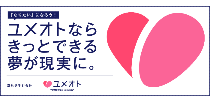| 一言メッセージ | ユメオトグループは風俗業界に関わるすべてのひとを幸せにするため、待遇や職場環境にも全力を尽くします! |