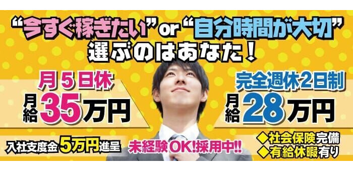 ①月給20万円 【週休2日制】 ②月給25万円 【週1日休】 |