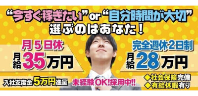 明るく真面目に働きたい方、大募集! 性別、学歴、経験問いません! 優秀な方はドンドン評価、実力主義の随時昇給昇格で、 早い方なら入社して3ヶ月程度で店長になれ…